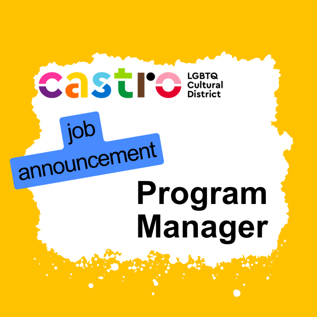 The Program Manager provides administrative, operational, and managerial support for the Castro LGBTQ Cultural District, a fiscally sponsored project of the SF LGBT Center. The Castro LGBTQ Cultural District strives to preserve, sustain, and promote the rich cultural legacy of the Castro and its significance to San Francisco’s LGBTQ+ community and beyond. Our commitment is to highlight the structures and sites important to our history; foster racial, ethnic, gender and cultural diversity among residents and businesses; and create a safe, welcoming, and inclusive space for LGBTQ+ people and allied communities to visit the Castro and call it home.